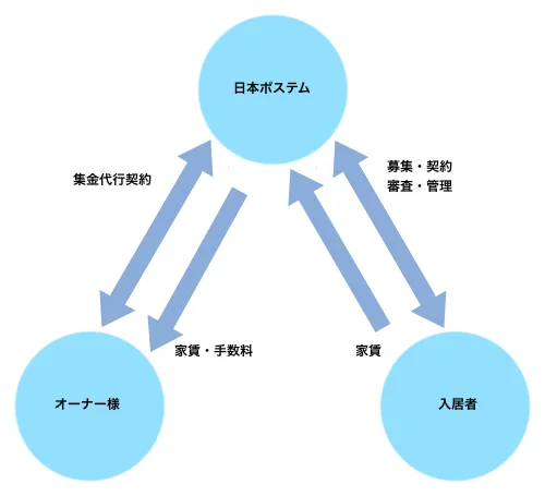 オーナーに代わり、入居者の募集、審査、賃貸借契約の代行、賃料の入金チェック、 入居者のクレーム処理、解約時の立会い、修繕の手配等の一切の業務を行います。